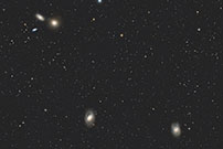 しし座の腹のあたりにある系外銀河の小集団です。3つのメシエ天体のほか、2つのNGC天体も合わせて計5つの銀河が狭い範囲に寄り集まっています。2013年2月11日撮影。