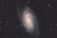 おおぐま座にある棒渦巻銀河です。メシエ天体の中では最も暗い部類の上、2等星がごく近い位置にあるため、撮影の難しい天体です。それでもなんとか棒渦巻の姿が分かります。2017年3月5日撮影。