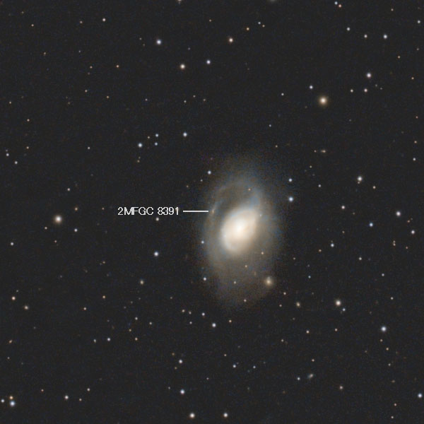 そのすぐ下には渦巻星雲のNGC3389が見えています(写真左下)が、こちらは11.8等とさらに暗く、メシエやメシャンの時代には発見が難しかったでしょう。地球からの距離は約7000万光年と「しし座I銀河群(M96銀河群)」のメンバーの倍ほども離れていて、たまたま同じ方向に見えているだけです。色が明らかに青っぽいので、おそらくは星形成が活発な銀河なのだろうと思われます。